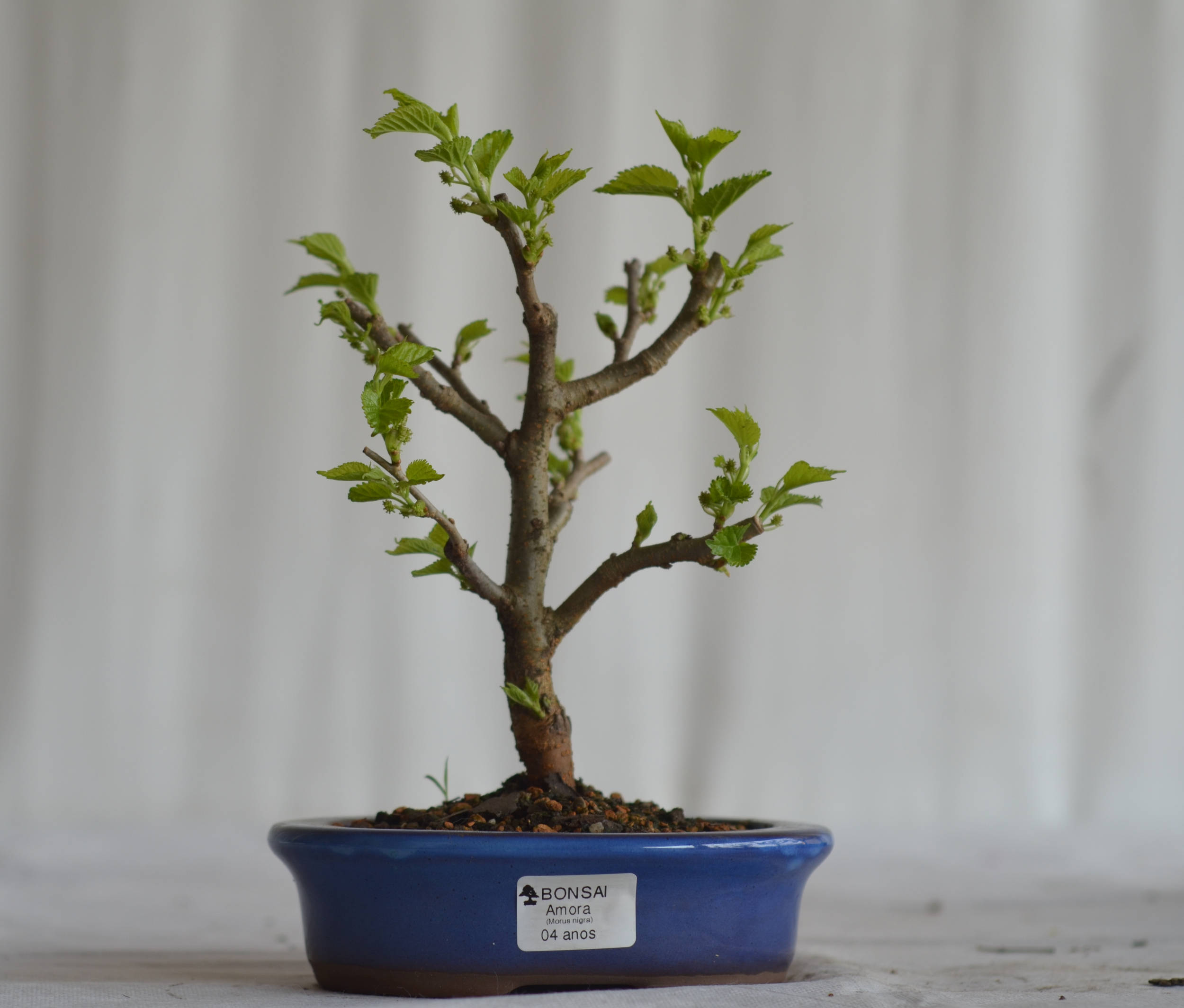 O bonsai amora é a árvore que alimenta os famosos bichos da seda, tendo aparecido há 2.700 anos a.C. Espécie frutífera que alcança uma altura de aproximadamente 15m, e tem como peculiaridade a longevidade, podendo viver até 500 anos. As espécies apresentam formas distintas, segundo a variedade, com folhas alternadas, bordadas de grandes dentes, lobuladas de cor verde claro, brilhantes por cima. Têm coloração amarelo-dourada no outono. Os frutos de cor branco rosado, ovalados, maduram entre fevereiro-março.