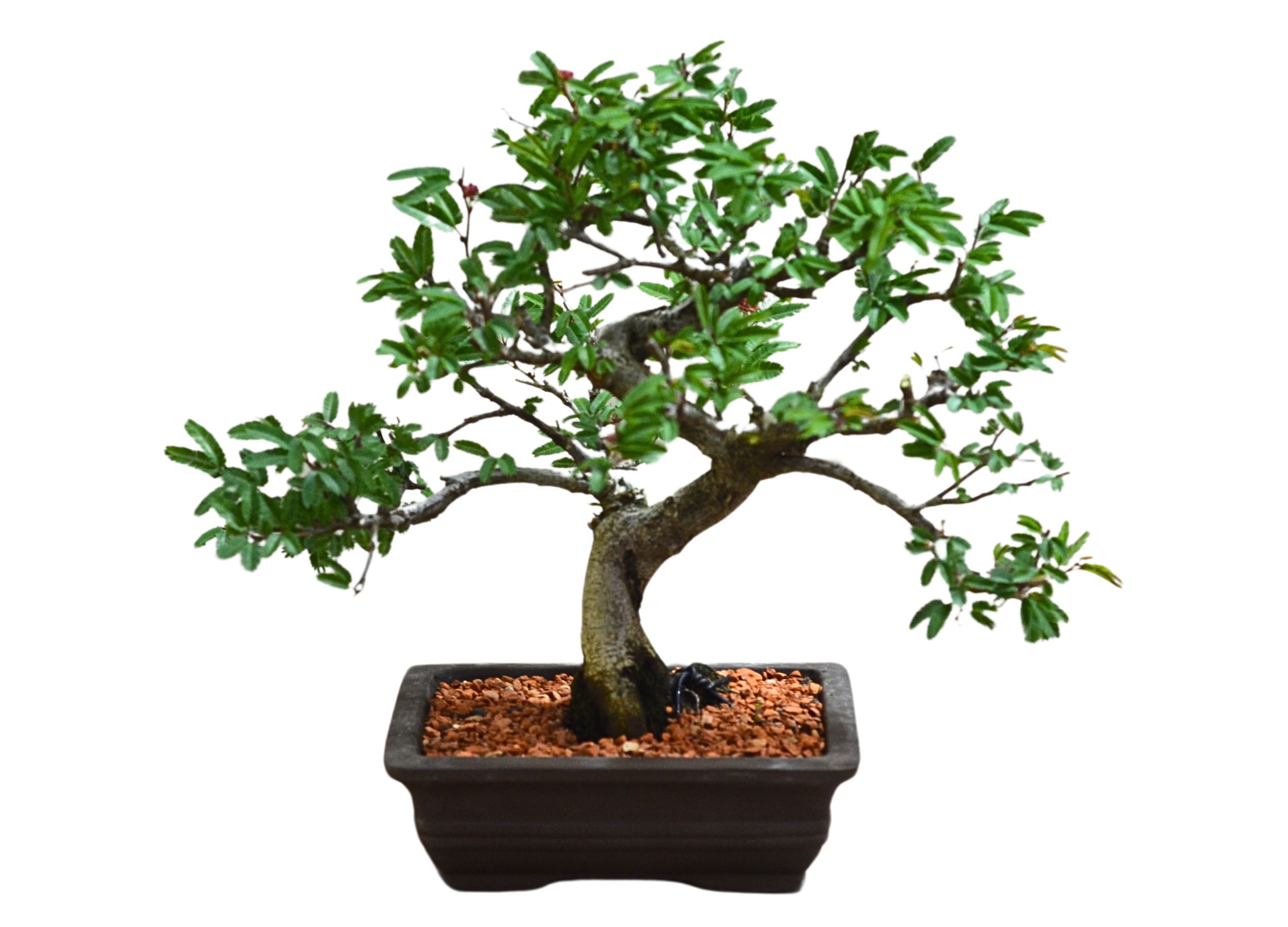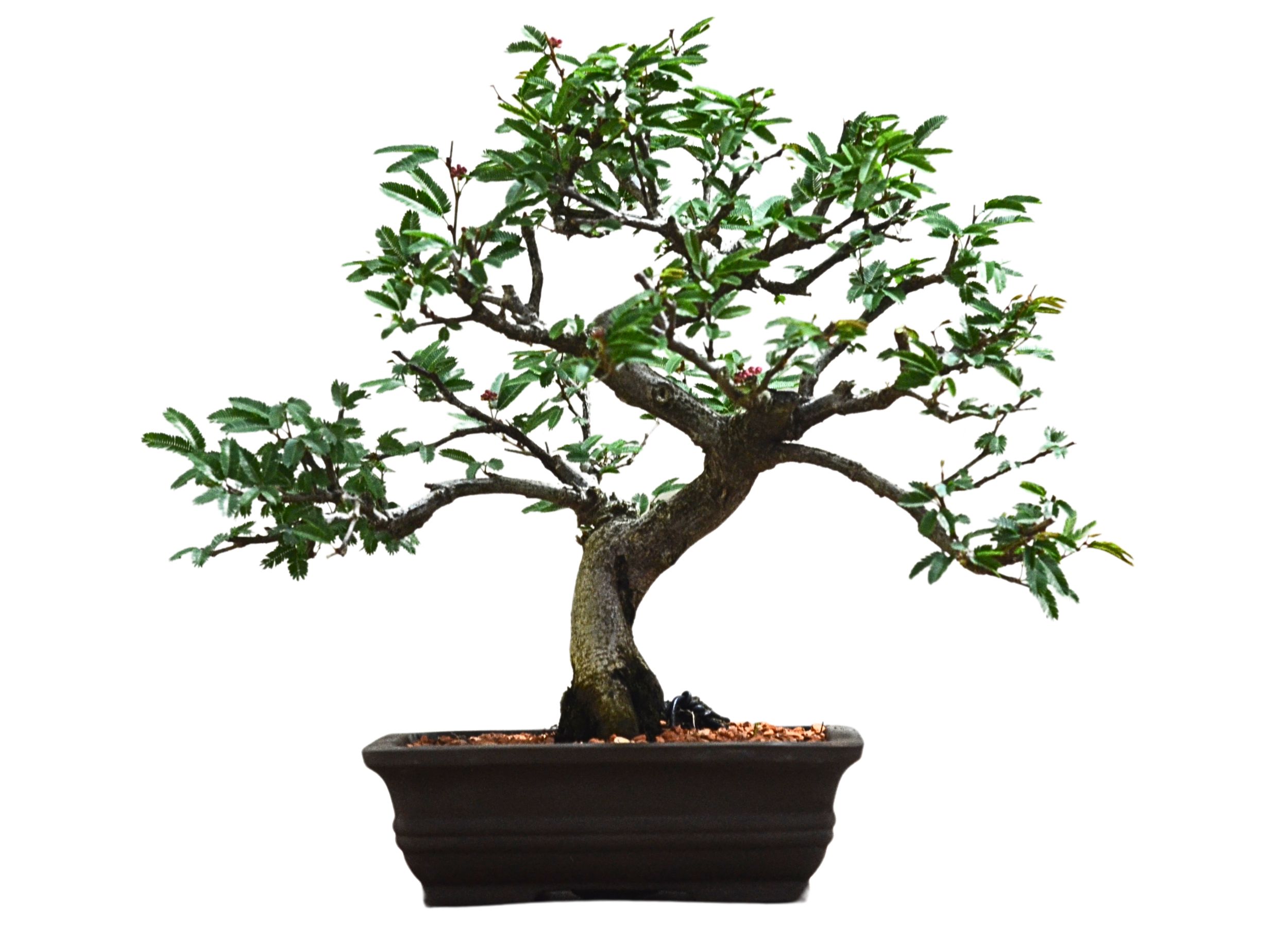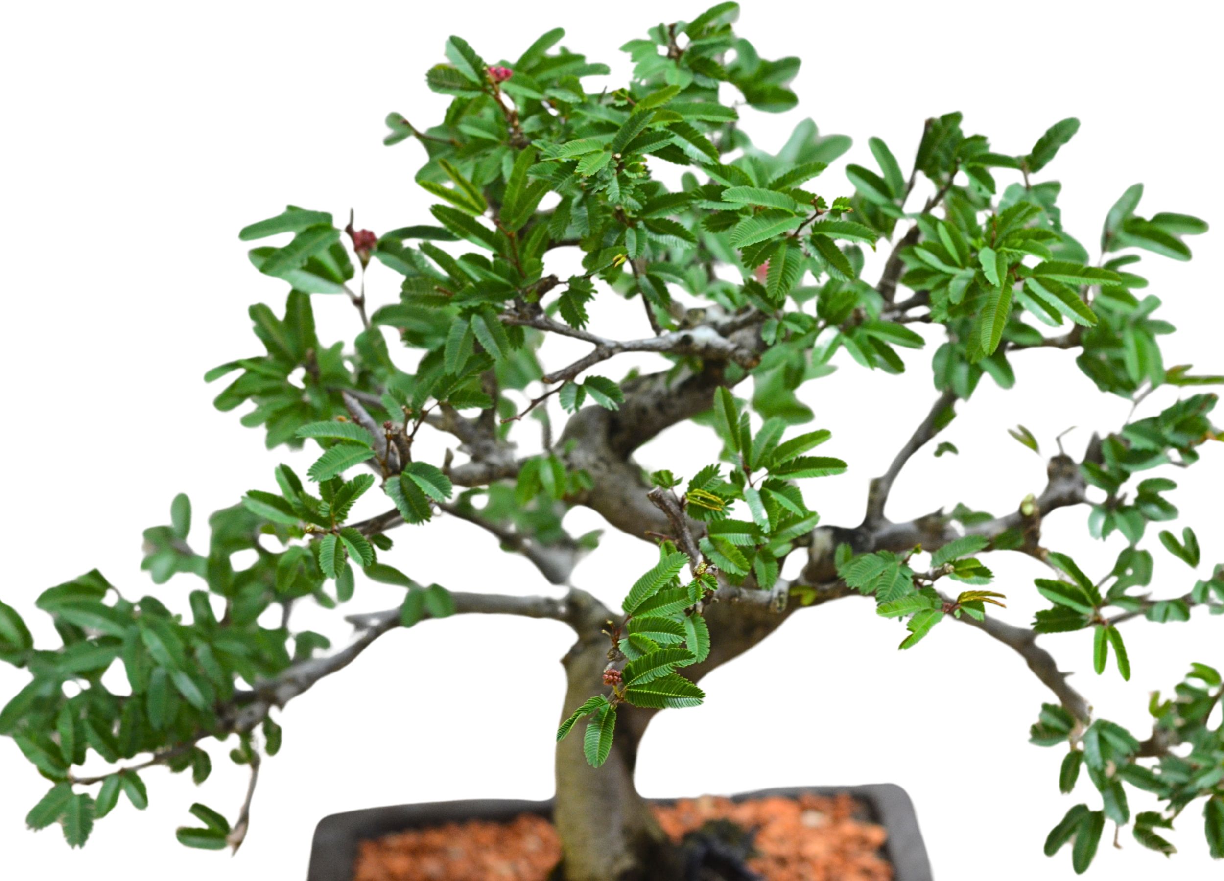 O Bonsai de Caliandra rosa, é a planta símbolo do serrado brasileiro. Suas folhas são bi pinadas e as flores são finas e delicadas em forma de pompom que variam entre branco, rosa e vermelho. Essas, fecham-se durante a noite por um processo natural da planta, devido a sensibilidade de suas flores. O fechamento das folhas e flores também pode ser causado por desidratação ou mudanças de luminosidade.