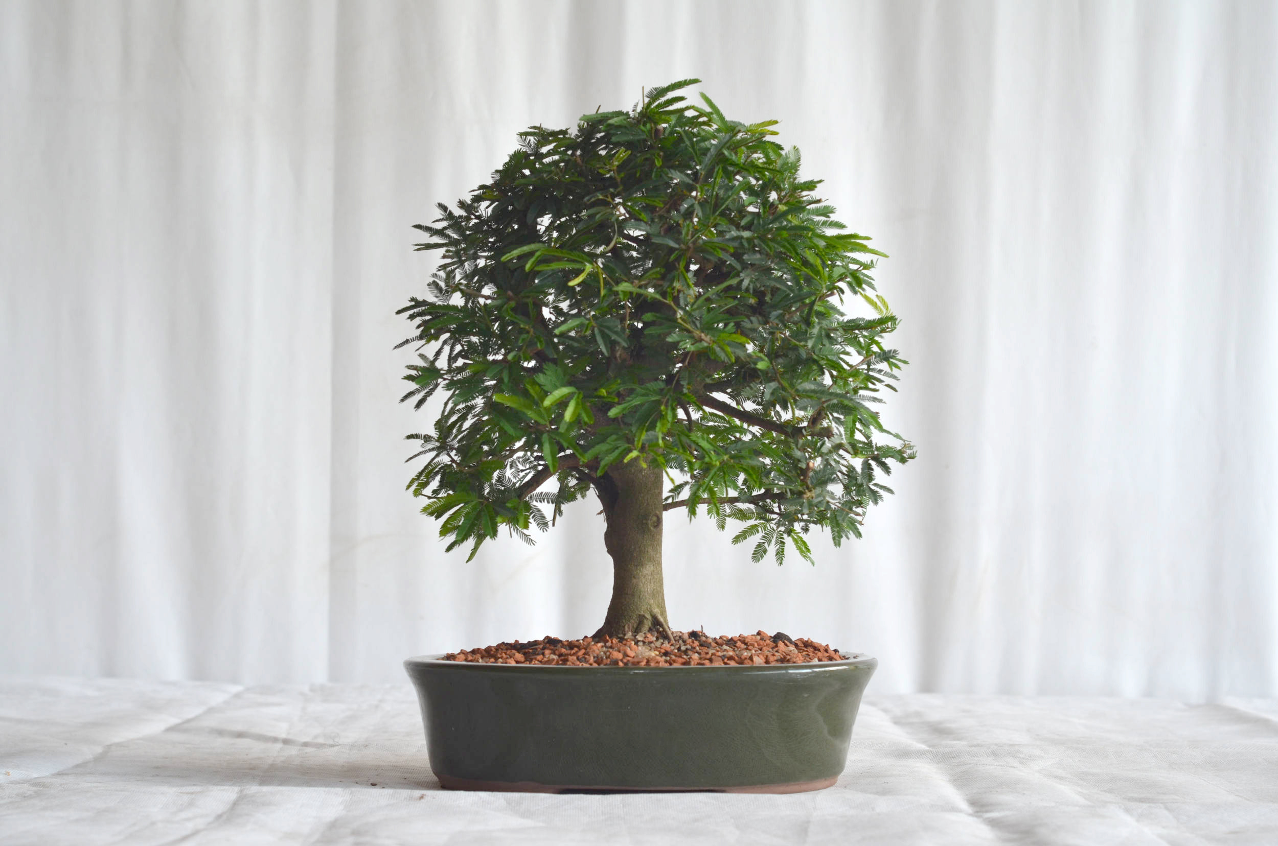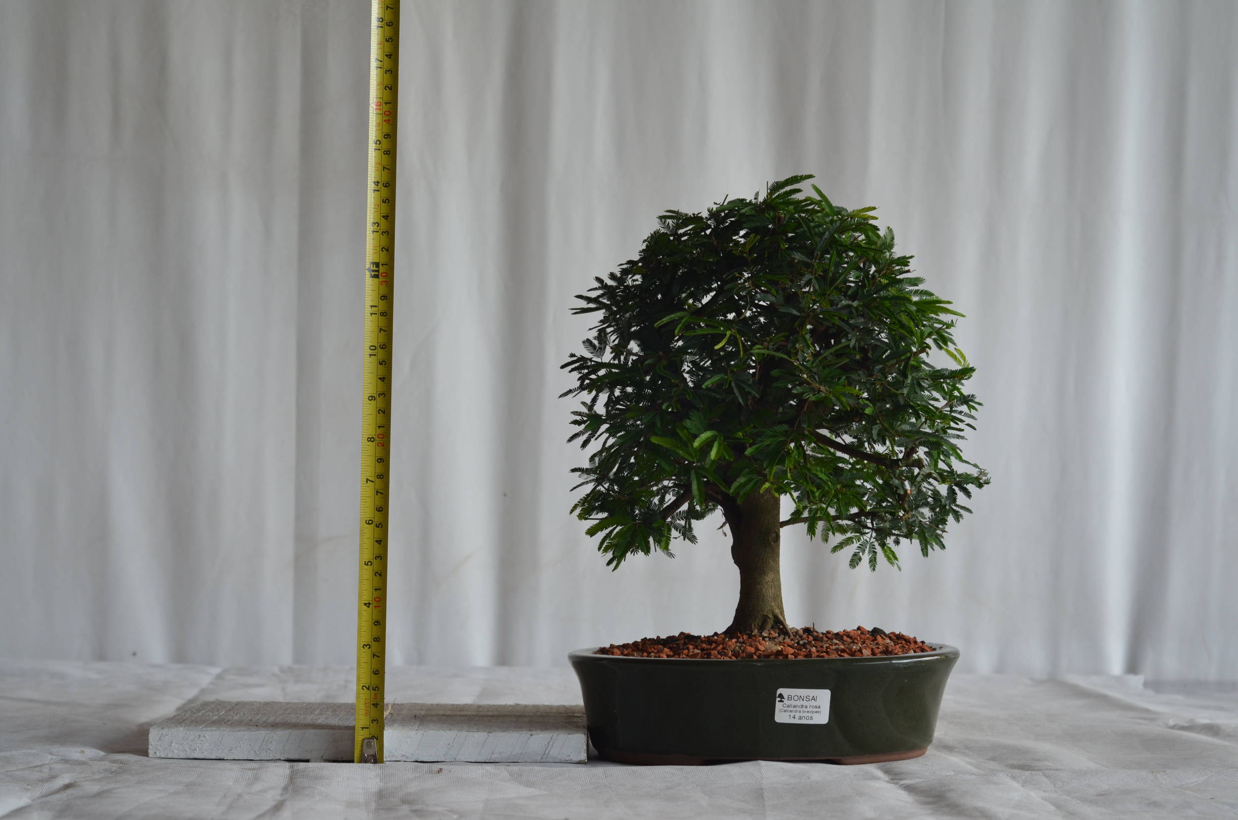 O Bonsai de Caliandra rosa, é a planta símbolo do serrado brasileiro. Suas folhas são bi pinadas e as flores são finas e delicadas em forma de pompom que variam entre branco, rosa e vermelho. Essas, fecham-se durante a noite por um processo natural da planta, devido a sensibilidade de suas flores. O fechamento das folhas e flores também pode ser causado por desidratação ou mudanças de luminosidade.