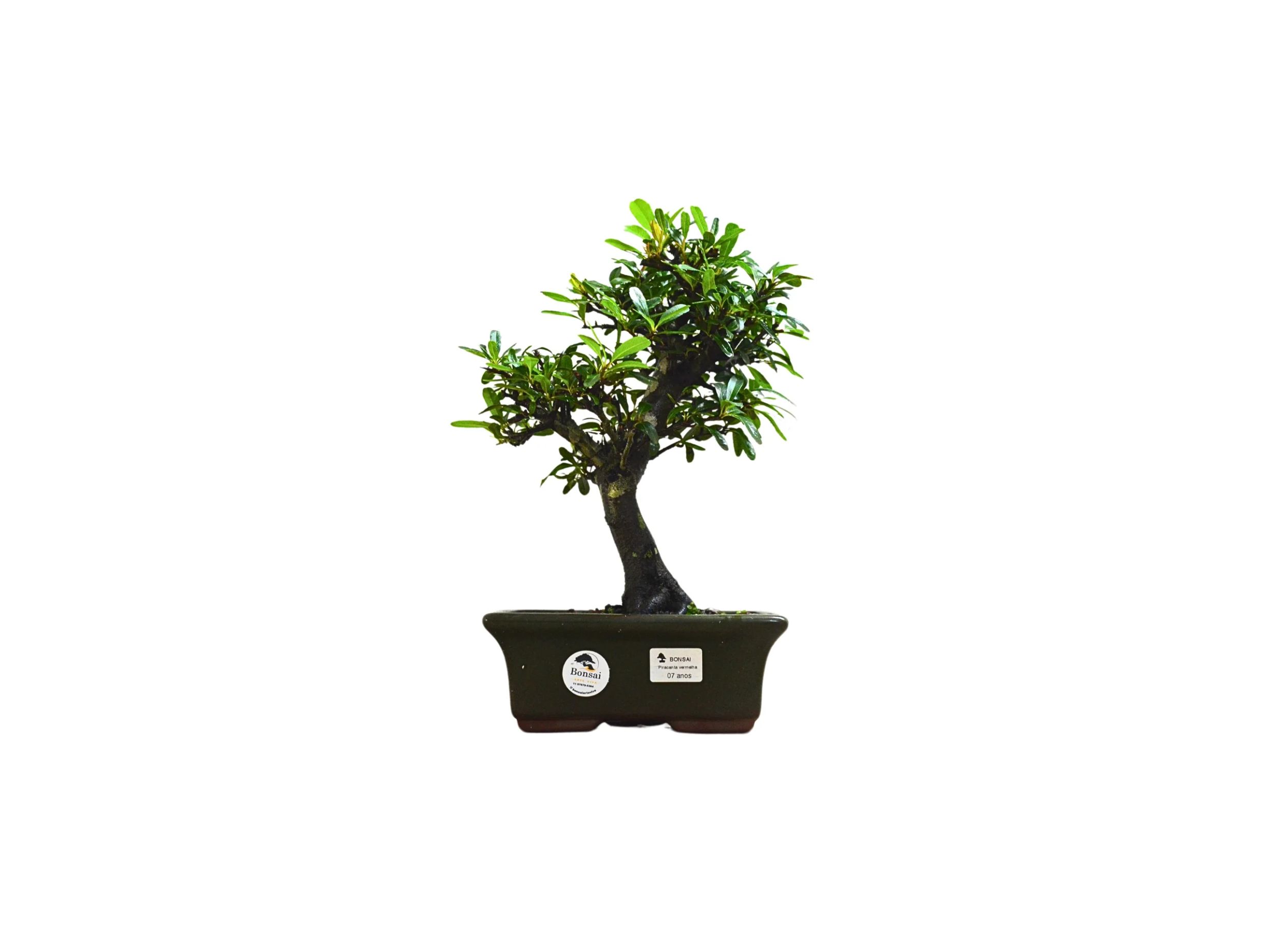 O bonsai piracanta tem a superfície das folhas glabra e de cor verde escura, enquanto que a página inferior é verde-pálido, mais clara e pubescente. As inflorescências surgem no verão e são do tipo corimbo, com numerosas flores brancas e pequenas, com perfume não muito agradável, mas fraco. No outono e inverno, as flores dão lugar a numerosos frutinhos do tipo baga, amarelos, laranjas ou vermelhos, que permanecem por longo tempo adornando a planta, a não ser que sejam comidos por ávidos passarinhos