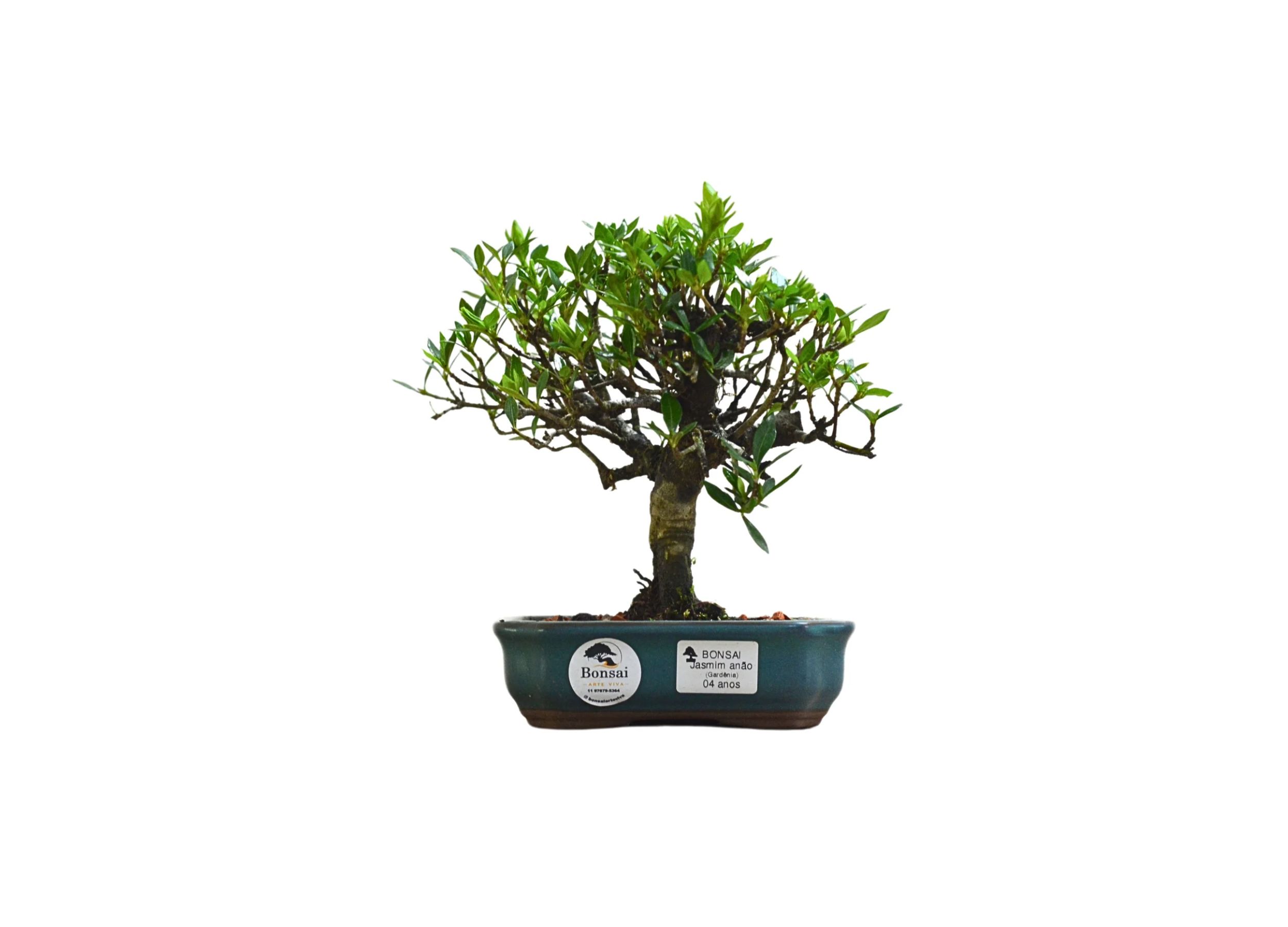 Características: É originária da Ásia, sendo que a maioria das espécies é encontrada no sul da China, Taiwan e Japão. Na natureza apresentam crescimento arbustivo não chegando a um metro de altura e suas folhas são verdes, pequenas e brilhantes. Suas flores são dobradas, brancas e com uma forte fragrância típica dos jasmins. O gênero apresenta muitas espécies, mas a mais cultivada no Brasil para bonsai é a Gardênia jasminoides Radicans, conhecida como Jasmim anão.