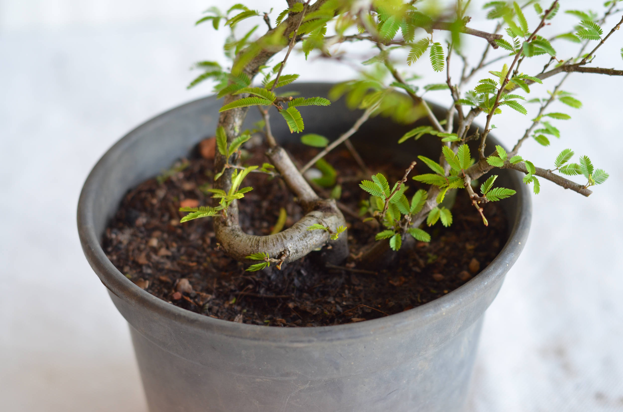 O Bonsai de Caliandra rosa, é a planta símbolo do serrado brasileiro. Suas folhas são bi pinadas e as flores são finas e delicadas em forma de pompom que variam entre branco, rosa e vermelho. Essas, fecham-se durante a noite por um processo natural da planta, devido a sensibilidade de suas flores. O fechamento das folhas e flores também pode ser causado por desidratação ou mudanças de luminosidade.