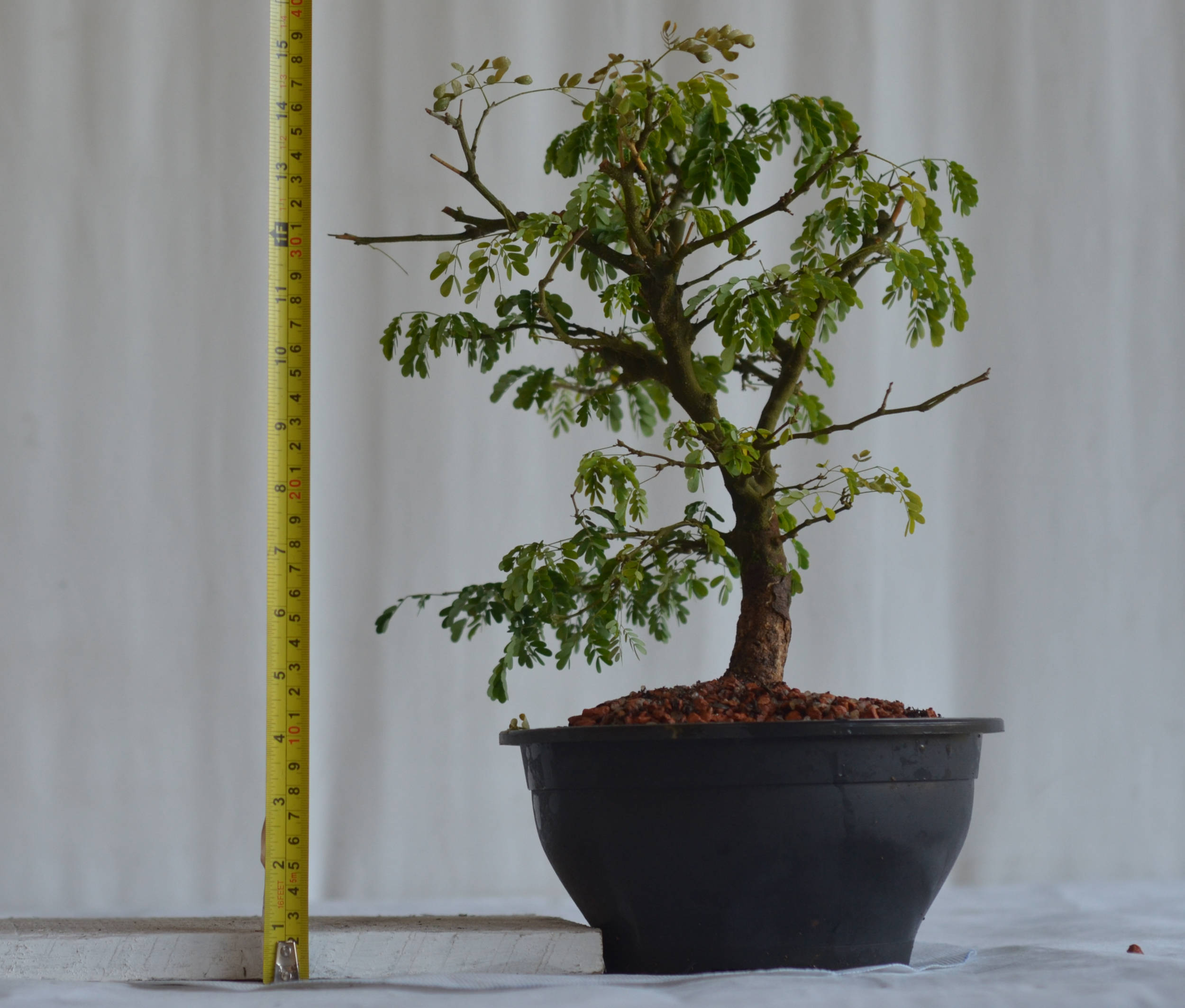 As folhas são compostas bipinadas, de cor verde claro, possuem cerca de 3 pares de espinhos, e até 8 pares de folíolos oblongos, cada um com cerca de 15 mm de comprimento por até 5 mm de largura.