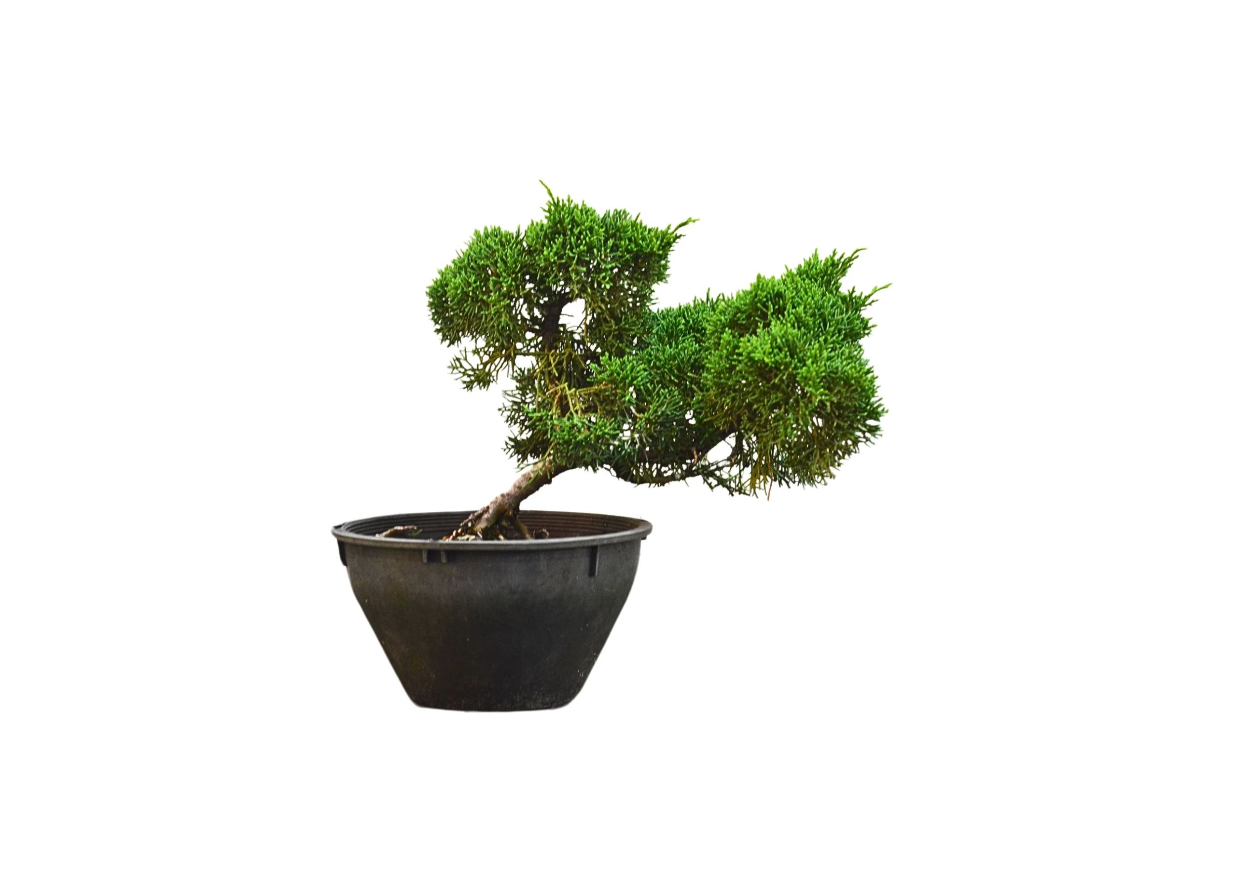 Sua folhagem em formato de escamas aderidas a estrutura e sua fina ramificação formam um conjunto compacto que possibilita o desenvolvimento dos mais diversos estilos e tamanhos de bonsai. Se escovado, o tronco recoberto por casca de cor marrom escura revela um belo tom avermelhado que harmonizará com o verde escuro da folhagem e o branco da madeira.